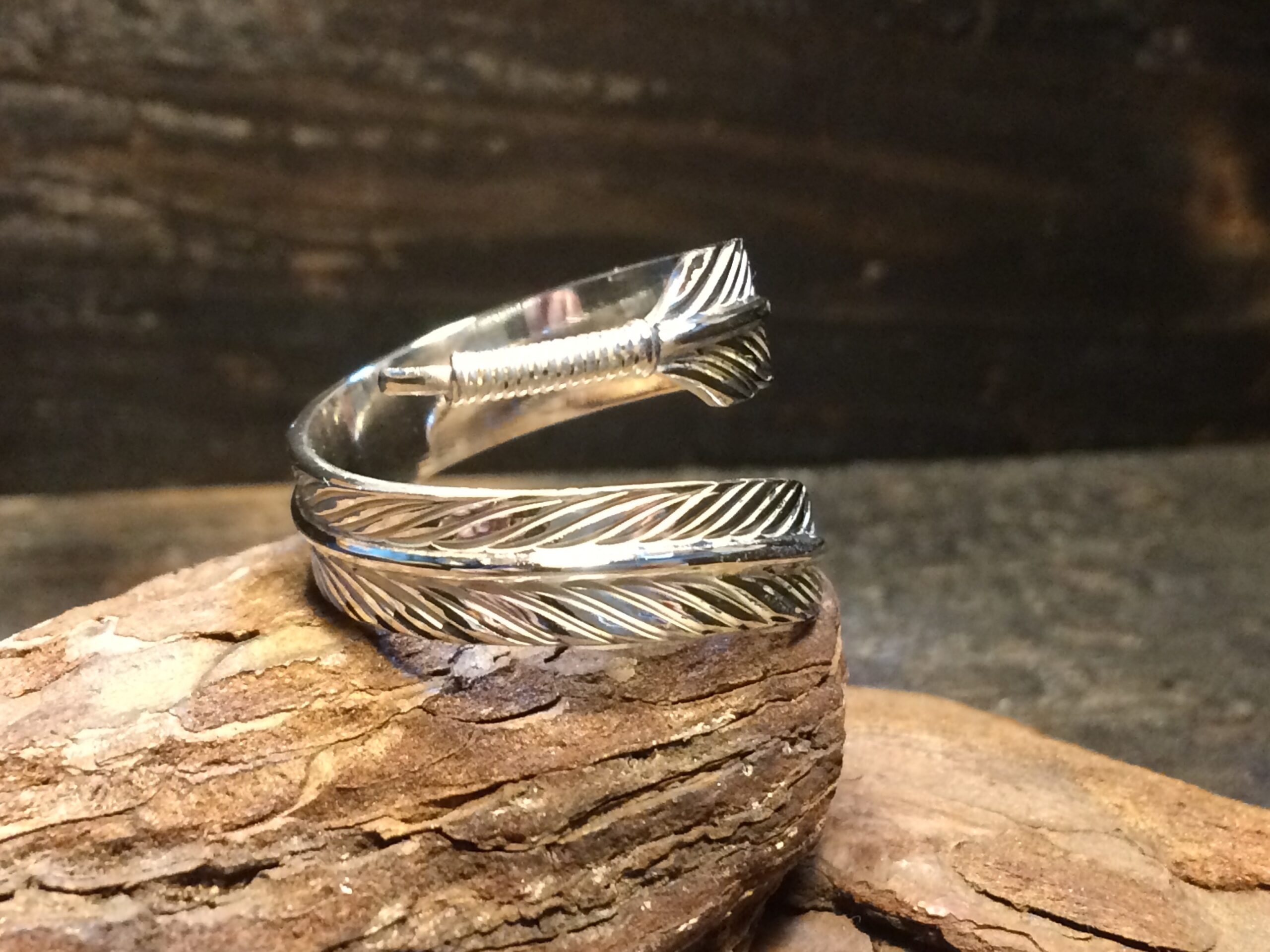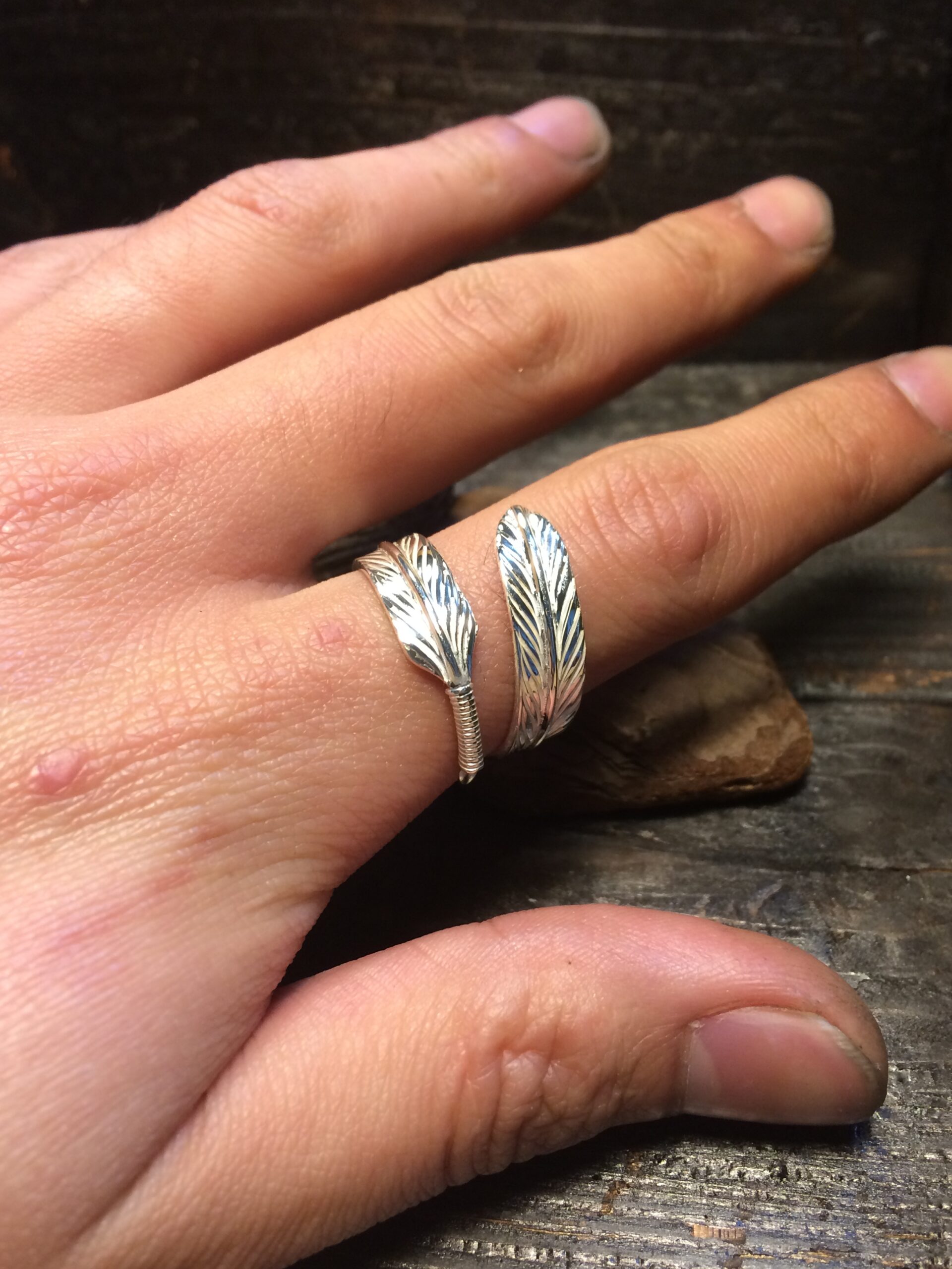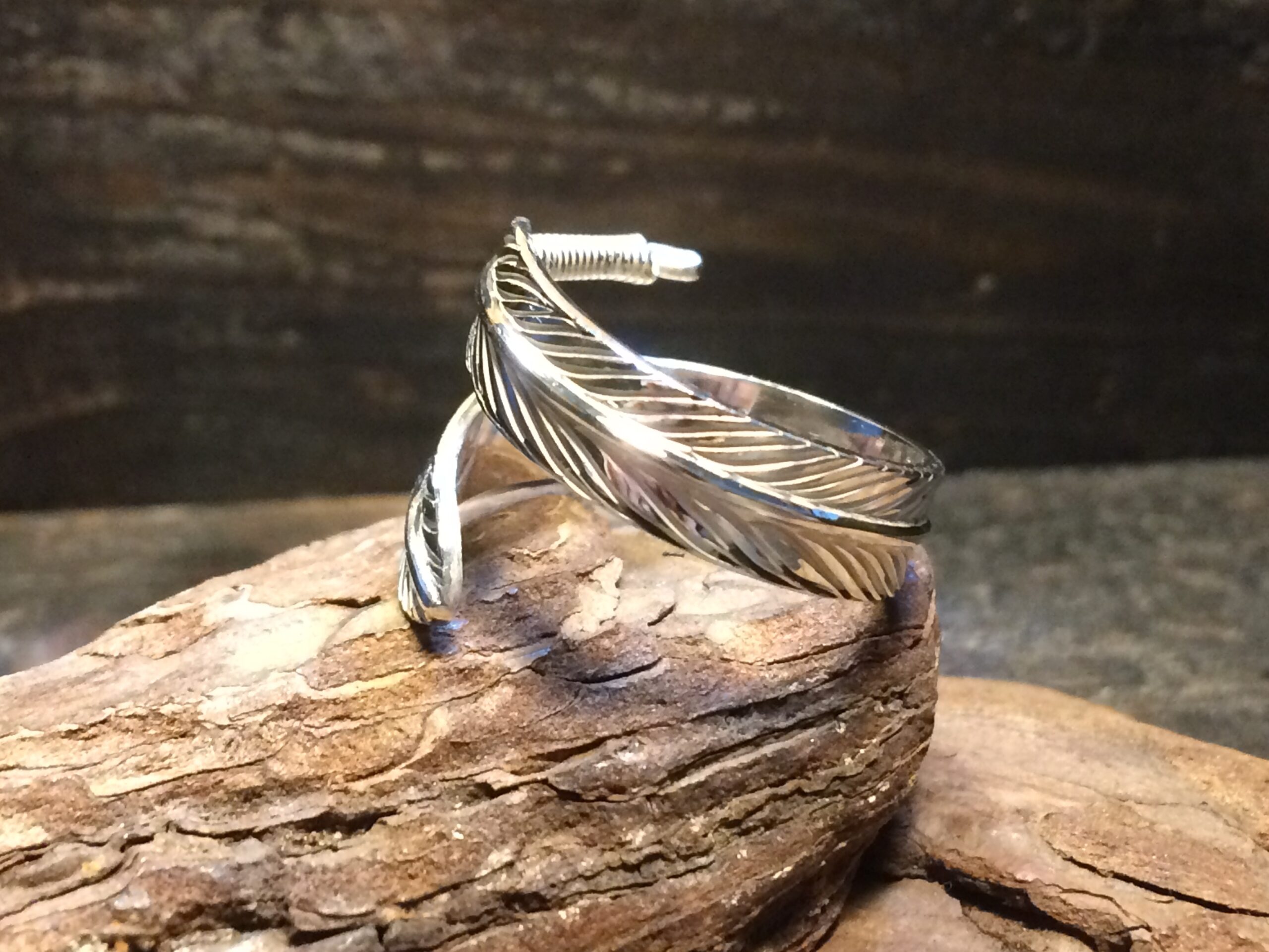 フェザーが一周して指に巻きつくようなデザインのリングです。